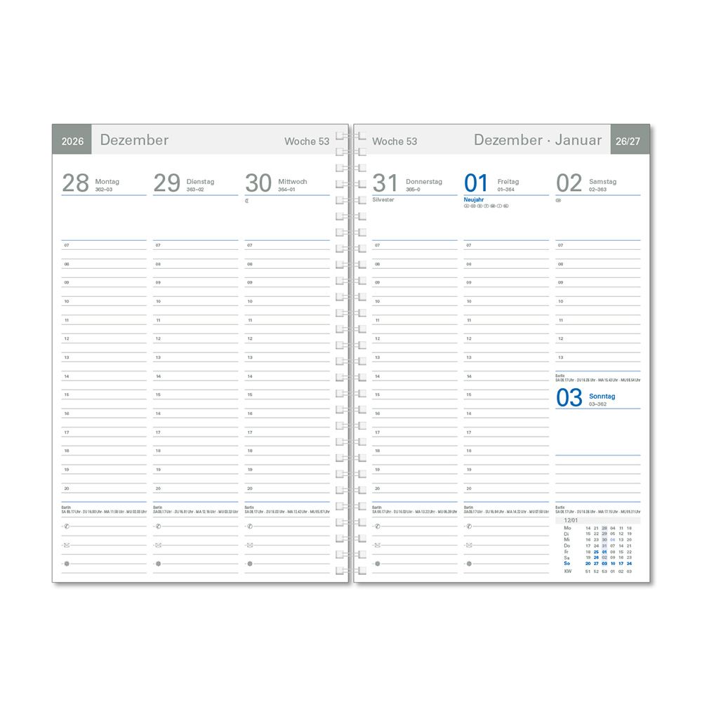 | Besonderheiten | je Tag 1 Seite, Sa/So auf einer Seite